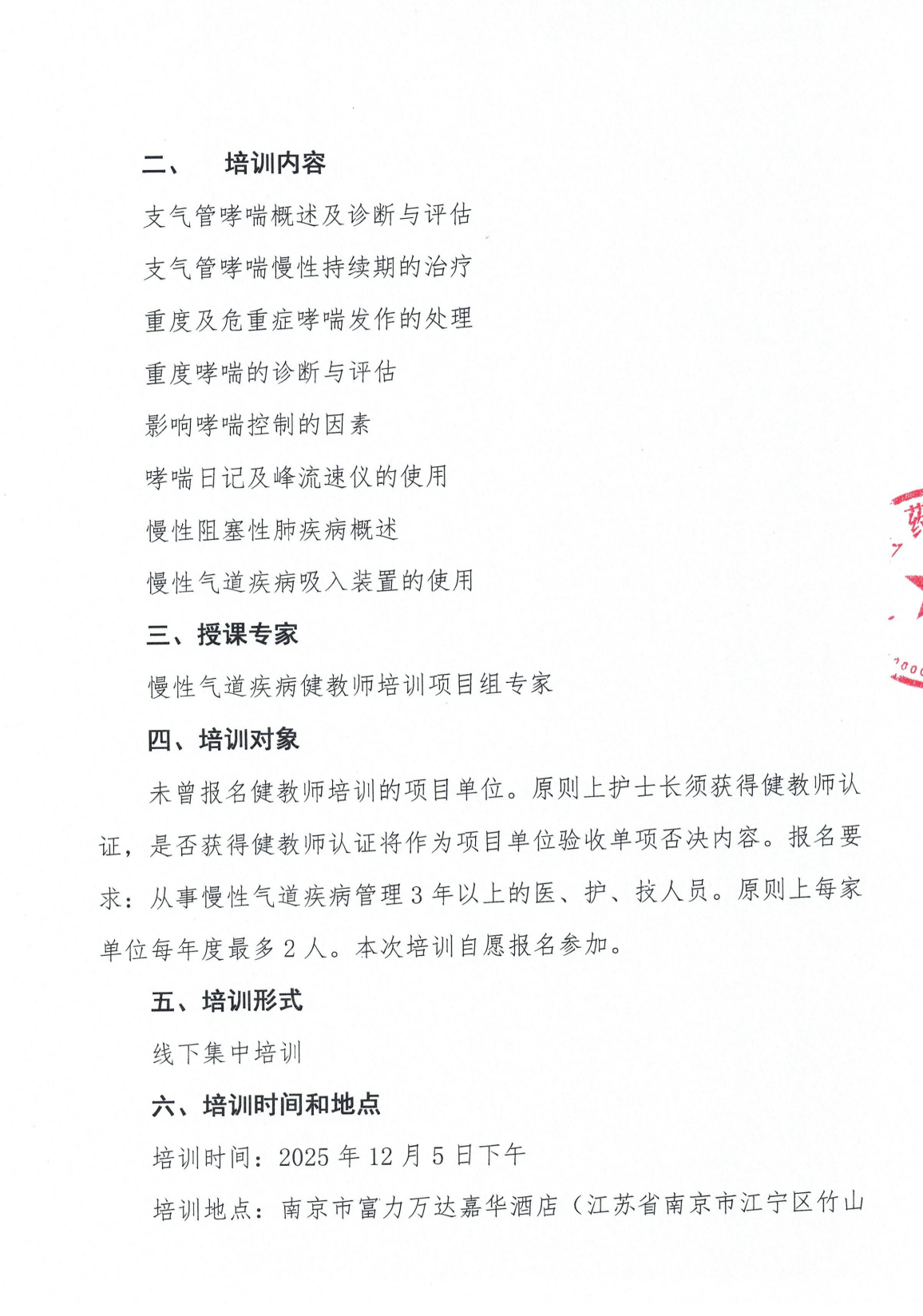 关于“慢性气道疾病健教师培训”项目(第3期)第一次培训的通知