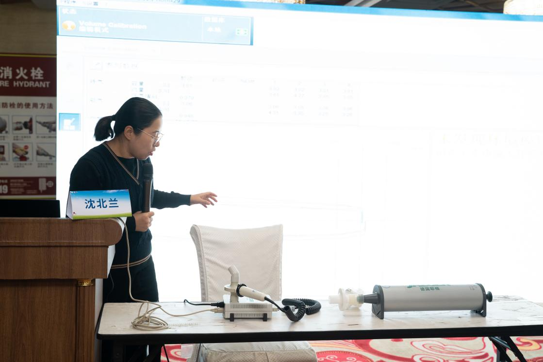 精彩的学术分享结束后,全体学员通过线上答题的方式完成了培训后的理论考核;技师学员继续参与肺功能仪器操作演示及培训。经现场肺功能仪器操作示范,加深各位学员对仪器操作的熟悉程度。