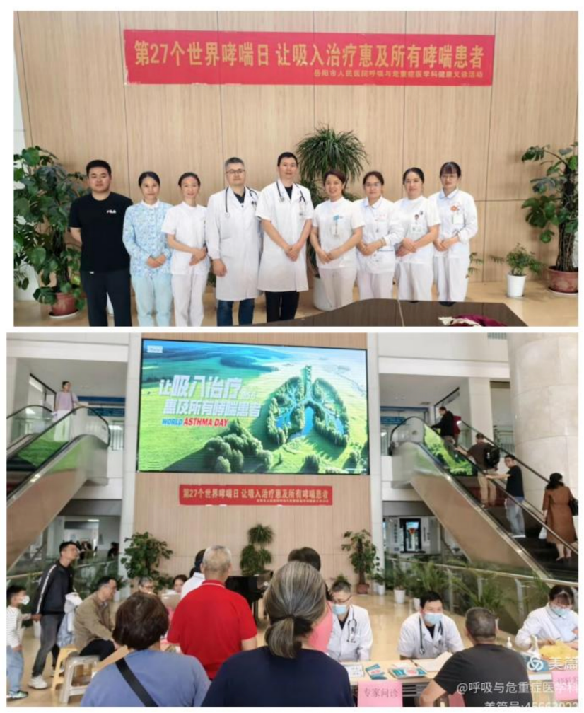 (三)人才培养与基层赋能:作为国家级重点专科建设单位,学科始终牢记责任与担当,牵头组建岳阳市呼吸疾病防治基层联盟与呼吸医联体,与40余家基层医疗机构建立深度合作关系。通过定期开展基层医务人员培训、质控抽查指导,建立医联体双向转诊机制,实现资源共享与技术下沉。每年开展国家及省市级学术会议、基层医师培训班10余次,采用线上线下结合形式覆盖湘北地区各级医疗机构,累计培训基层医师500余人次;在世界哮喘日、世界慢阻肺日等节点,开展免费义诊、肺功能筛查、健康咨询及诊疗工具赠送活动,推动呼吸疾病规范化诊疗技术扎根基层。通过双向转诊、远程会诊、技术指导等方式,推动区域呼吸健康水平整体提升。
