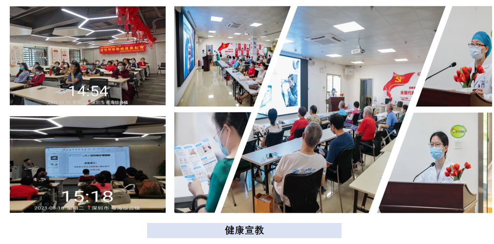 通过采用线上线下活动相结合等方式,举办呼吸慢病疾病科普宣教、义诊活动,通过下社康坐诊、采用新媒体(微信公众号、短视频、直播平台)等多种形式为辖区居民普及呼吸疾病知识,每季度定期举办呼吸慢病疾病科普宣教、义诊活动,促进患者的早期筛查。