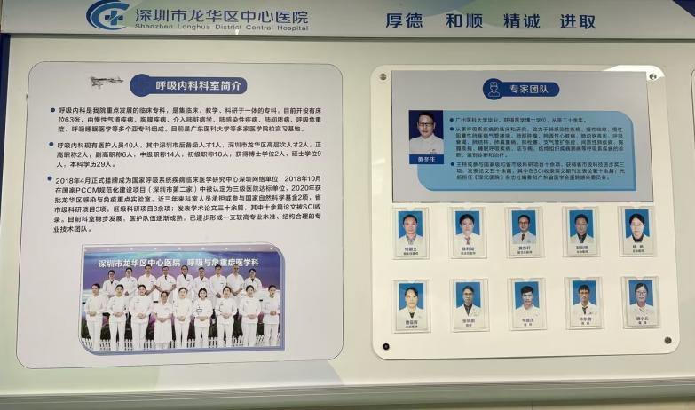 呼吸与危重症医学科是龙华区医学重点建设单位,设备投入超1000万元,属于国家PCCM规范化建设三级医院达标单位,隶属中国肺癌防治联盟,是国家呼吸医学中心嗜酸粒细胞增多相关性疾病多学科诊疗协作组成员单位,国家呼吸系统疾病临床医学研究中心深圳网络单位,深圳咳喘管理联盟成员单位。