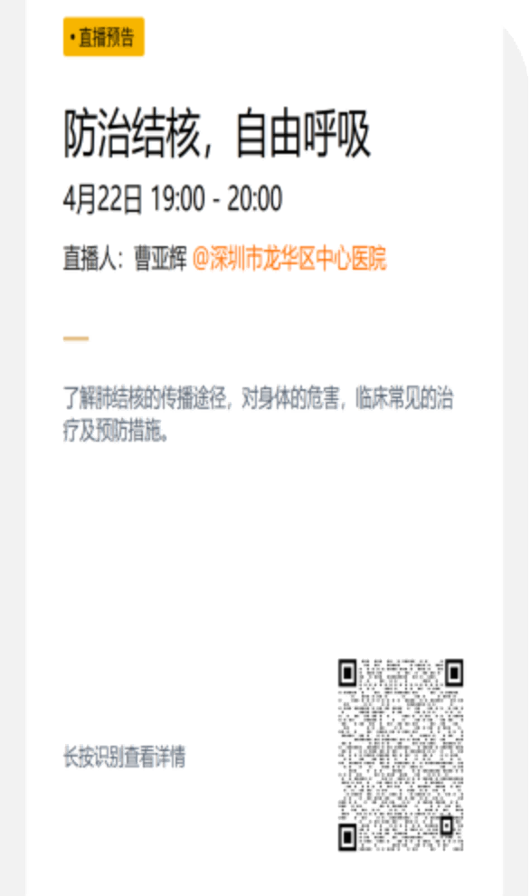 2、依托线上平台,定期开展呼吸科常见病科普直播,围绕肺结节、慢阻肺、哮喘、戒烟等群众关注度高的疾病,讲解疾病预防、症状识别、规范治疗、日常护理等核心知识。观看人数累计数千人次。