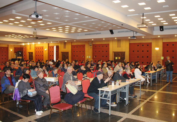 尽管9:00联谊会才正式开始,从8:00开始许多患者就陆陆续续地抵达了会场。作为老患者都知道,每年第四季度的活动都是这一年支气管哮喘协会的重头戏,支气管哮喘患者协会医学咨询组何权瀛教授、母双、马艳良和陈燕文副主任医师、慢性阻塞性肺疾病医学咨询组张荣葆副主任医师、谭星宇医师、王雯护士长以及医务处健康教育科孙淑琴科长等都很早来到了会场并为大家精心准备了有奖猜谜、专业知识问答等等丰富多彩的内容。提前到会的会员和家属饶有兴致地参加了脑筋急转弯和谜语竞猜,会场里提前洋溢着过节的喜庆气氛。这次会议的主题仍然是哮喘患者的才艺展示,与以往不同的是,这次联谊会还联合了慢性阻塞性肺疾病的患者与家属共同参加,何权瀛教授也专门为大家讲解了支气管哮喘和慢性阻塞性肺疾病这两种呼吸系统常见慢性疾病的区别,解除了病友们心中的疑问。两位资深的主持人——哮喘患者联络组的柴秀琴女士和风趣幽默的张纪先生主持了本次活动,哮喘患者和慢性阻塞性肺疾病患者轮番上场,或轻歌曼舞,或吟诗诵词,或展示自己的书法或摄影作品。